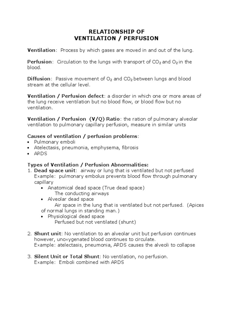 Ventilation And Perfusion Relationships Assignment Help Homework