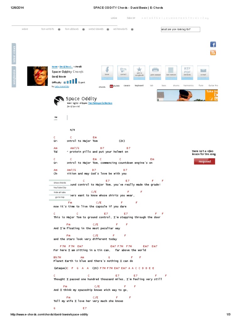 Space Oddity Chords David Bowie E Chords Entertainment
